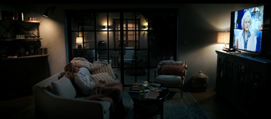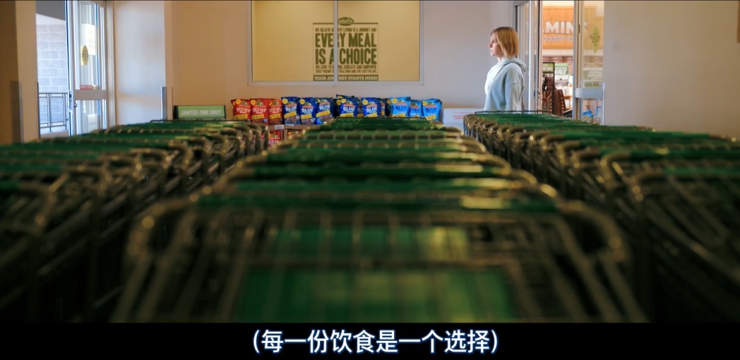 而当她从超市购物归来,躺在沙发上吃着预制食品、看着再也不会更新的罐头笑声综艺,一切都变得孤独而黯淡。