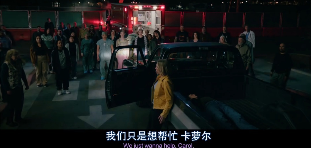 编剧也相当黑色幽默地讽刺了卡罗尔所代表的这类典型美国白人中产的傲慢,她要求与其他免疫者对话,却只会发表一些悬浮空泛的道理,而当其他免疫者问大家是否咨询过加入共同体的感受时,除了卡罗尔之外的所有人都举了手。