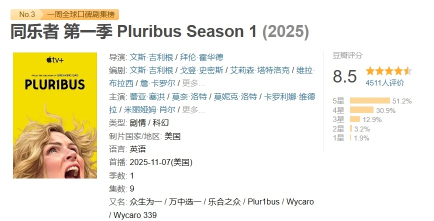 目前播出3集,豆瓣评分8.5、持续在一周全球口碑剧集榜排行前三,足以预定你的年度最佳美剧。